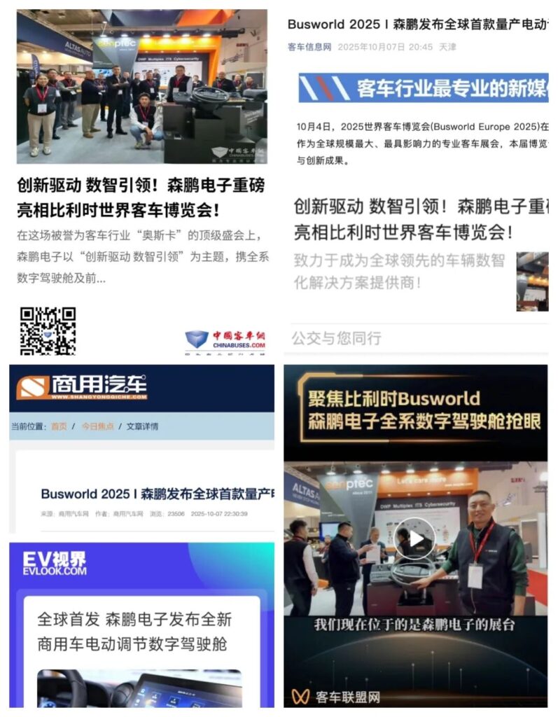Senptec’s digital intelligence products showcase not only at exhibition booths but are widely integrated into globally renowned bus brands. At the event, BYD’s B12, B13, and B18 bus series all feature its Driver’s Work place; King Long and Zhongtong Bus simultaneously adopt the Driver’s Work place paired with digital key solutions; Volvo Buses selects its intelligent central control screen; Shenwo Bus and Higer Bus respectively installed Driver’s Work place and Camera Monitor System products… These collaborations not only validate Senptec’s technological reliability and market recognition but also demonstrate its brand influence in the global premium bus market. During the exhibition, Senptec Electronics’ standout performance attracted coverage from authoritative industry media including “Commercial Vehicle Network,” “Bus Information Network,” and “Bus & Your Travel.”