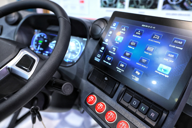 This product represents a seamless fusion of technological innovation and human-centered design. Featuring an integrated adaptive structure, the dashboard offers four-way adjustment (up/down, forward/backward). All driver-operated function switches are fixed in consistent positions, with controls accessible within single-arm reach—eliminating the need for the driver to shift from the seat back. This ergonomic design philosophy safeguards driver health while enhancing operational convenience. Furthermore, it precisely organizes and efficiently integrates critical driver information. Combined with intuitive touch controls, this enhances human-machine interaction flexibility and operational efficiency, making information access and function adjustments during driving simpler and more intuitive. It not only integrates multiple advanced features—such as ensuring vehicle safety, safeguarding driver health, centralized information display, whole-vehicle data integration, and driver-friendly operation—but has also passed all certifications required for export to the European Union.