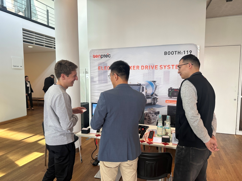 From 10th to 12th March, Zhengzhou Senpeng Electronic Technology Co., Ltd. showcased its E-Mixer Drum Drive System (E8) at the industry-leading event Beton Tage Concrete Solutions 2026. This solution replaces conventional hydraulic loading systems with innovative electric technology, providing concrete transport vehicles with a more energy-efficient, high-performance, and environmentally friendly power solution. It attracted numerous professional visitors for viewing and discussion.