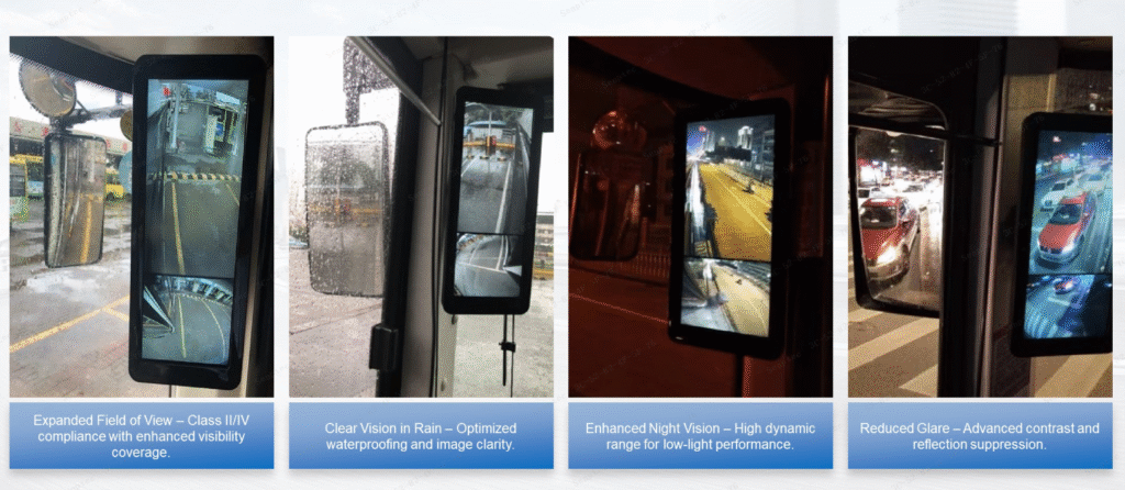 They are widely adopted in mainstream Chinese commercial vehicles including BYD, Yutong, King Long, Higer, Ankai, and Shenwo, with cumulative installations exceeding 3,000 units—truly realizing mass adoption of regulation-compliant Camera Monitor System!