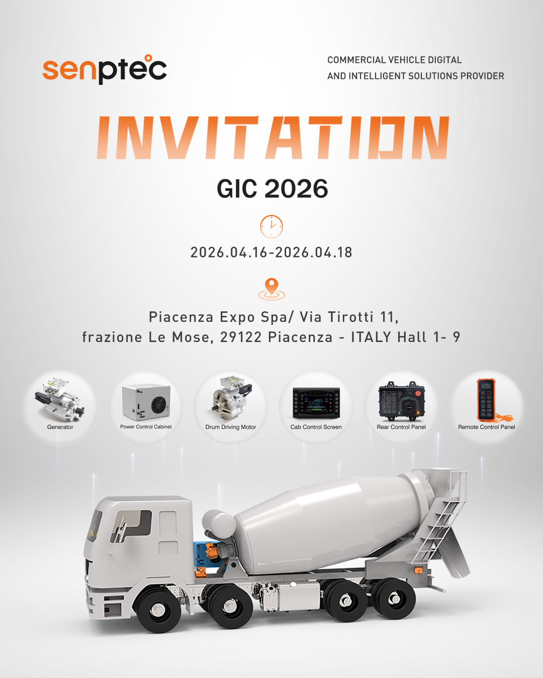 At GIC 2026, Senptec will present its Electric Mixer Drum Drive Solution (E8), designed to replace traditional hydraulic systems with an intelligent electric upper structure.